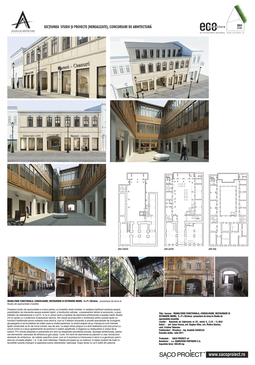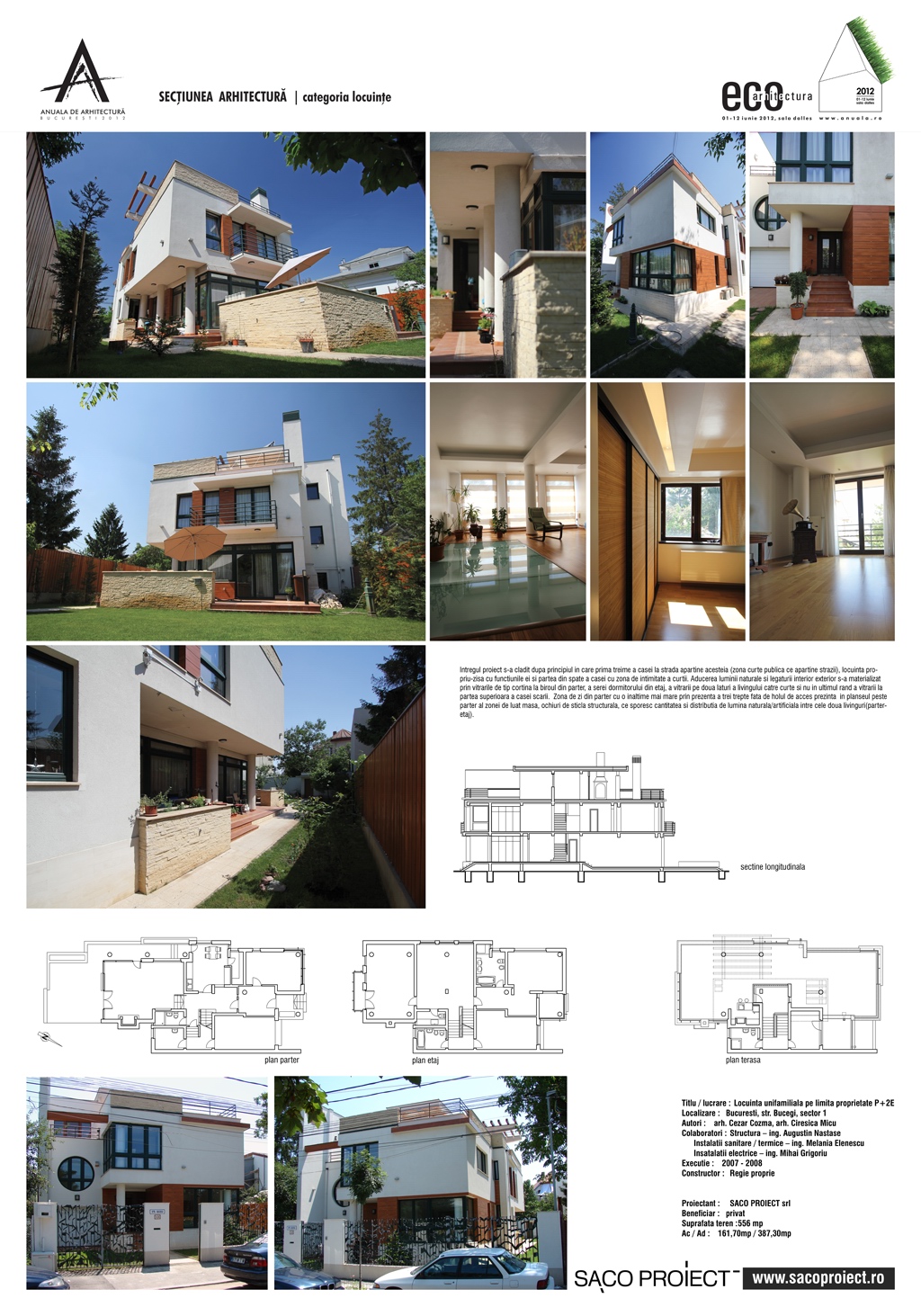 în perioada 01-12 iunie 2012, în spaţiul expoziţional Sala Dalles a avut loc ANUALA DE ARHITECTURĂ BUCUREŞTI – ediţia a X-a 2012. Firma SACO PROIECT a fost prezenta cu 3 proiecte in cadrul sectiunilor “arhitectură / locuinţe” si “studii si proiecte”